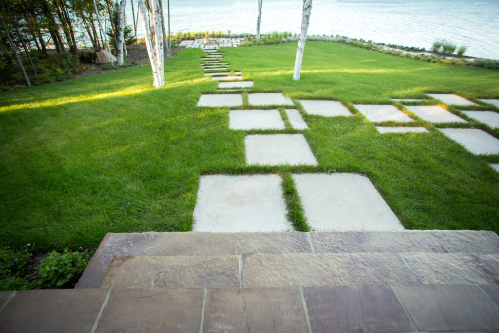 The refined slab edge allows for tight or moss-filled joints, blending precision with natural appeal.